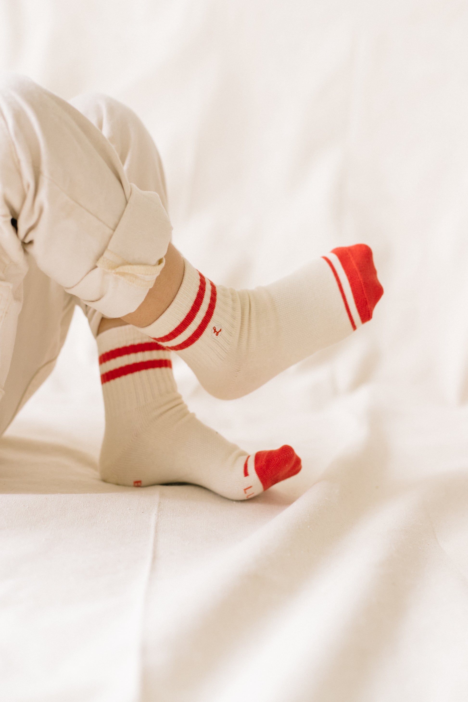 UNISEX - The "Americana" sock has the perfect balance of performance, and style for all Your activities. The classic red striping and details, with neutral creme base give you that timeless, yet competitive edge. Whether on the pitch, black-top, or hardwood, the Americana sock is designed and reinforced in all the right places for true performance. This quarter length sock is higher than a no show sock, and lower than a normal crew sock. LOOK GOOD. PLAY GOOD. LIVE BOLD.